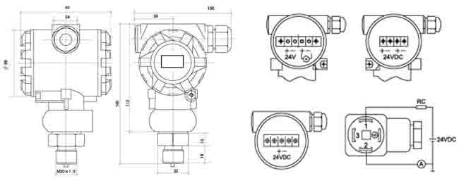 二、308系列压力变送器外形尺寸图及接线图