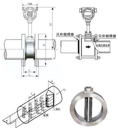 为了使用方便,电池供电的本地显示型涡街流量计采用微功耗高新技术,采用锂电池供电可不间断运行一年以上,节省了电缆和显示仪表的采购安装费用,可就地显示瞬时流量、累积流量等。温度补偿一体型涡街流量计还带有温度传感器,可以直接测量出饱和蒸汽的温度并计算出压力,从而显示饱和蒸汽的质量流量。温压补偿一体型带有温度、压力传感器,用于气体流量测量可直接测量出气体介质的温度和压力,从而显示气体的标况体积流量。