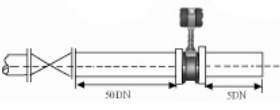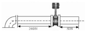 如果流量计的前端有90°弯头或T型接头,要保证流量计的前直管段≥15D,后直管段≥5D
