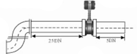 如果流量计的前端有两个90°弯头,要保证流量计的前直管段≥25D,后直管段≥5D
