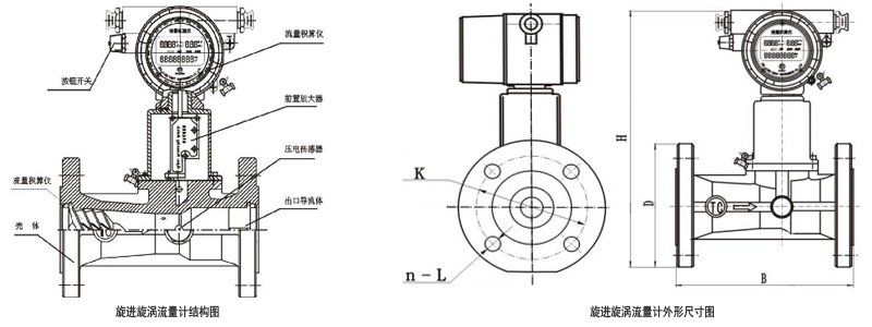 当沿着轴向的流体流量传感器入品时,在漩涡发生体的作用下,被强制围绕中心线旋转,产生漩涡流,漩涡流在文丘利管中旋进,到达收缩段突然节流后,使漩涡流加速,当通过扩散段时,漩涡中心沿一锥形螺旋线进动。此时,漩涡中心通过检测点的进动频率与流体的流速成正比。由压电传感器检测到的漩涡流进动频率信号经放大、滤波、整形后转换成流量值进行就地显示或信号选择。
