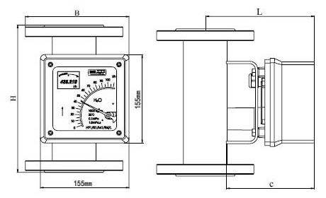 三、金属管流量计外形尺寸图: