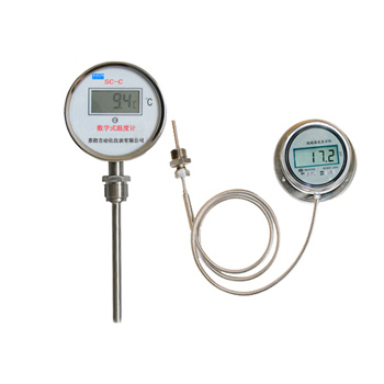 JP-RC数字式温度计以Pt100铂电阻作感温元件,采用进口高精度、低温漂、超低功耗集成电路和宽温型液晶显示器,内置高能量电池连续工作≥5年无需敷设供电电缆,数字式温度计是一种精度高、稳定性好、适用性强的现场温度显示仪。是传统现场指针双金属温度表的理想替代产品。