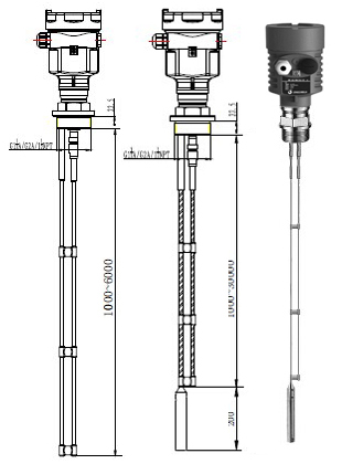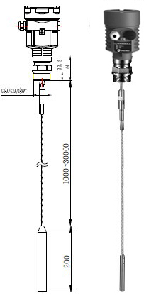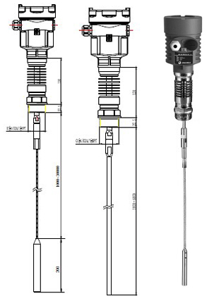 JP-LD31导波雷达物位计采用了100MHz~1.8GHz的发射频率,缆式探头,安装方式有螺纹或者法兰。测量对象为一般液体与固体颗粒状物料,大量程为30米。