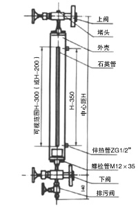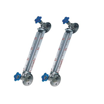 仪表上下阀都装有PN1.6MPa,DN20的法兰。通过焊接在容器上的法兰,与容器组成连通器,透过玻璃管就可直接显示容器内介质液位的高度。