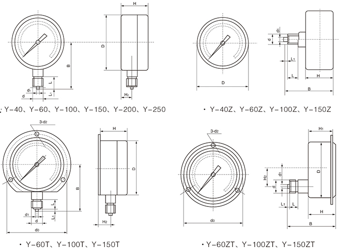 Y-40/60/100/150/250系列一般压力表