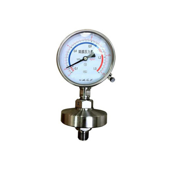 Y-60/100/150ML螺纹式隔膜压力表的隔膜体下面的以螺纹为安装形式的隔膜压力表。适用于测量强腐蚀、高温、高粘度、易结晶、易凝固和有固体浮游物介质的压力,以及对某些测量介质不能直接进入通用型仪表内和便于清洗防止沉淀物质积聚的场合压力检测时,采用由隔膜隔离器与通用型压力仪表组成一个系统的隔膜表。