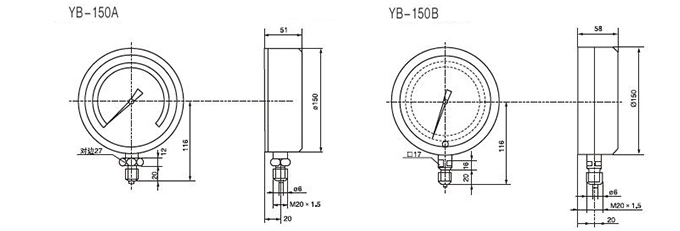 YB-150A/B压力表主要做为标准表用来校验工业用普通压力表,压力表也可在工艺现场测量对铜合金和合金结构钢等材质无腐蚀性、非结晶、非凝固介质的压力。
